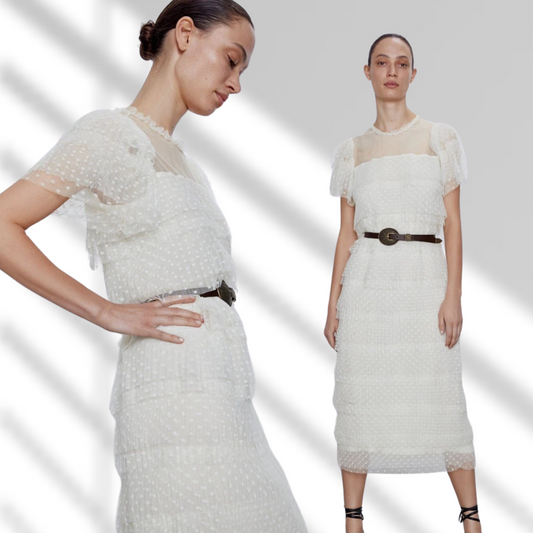 AgotadoVestido midi romántico beige
