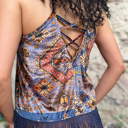 Top aterciopelado bohemio con flecos