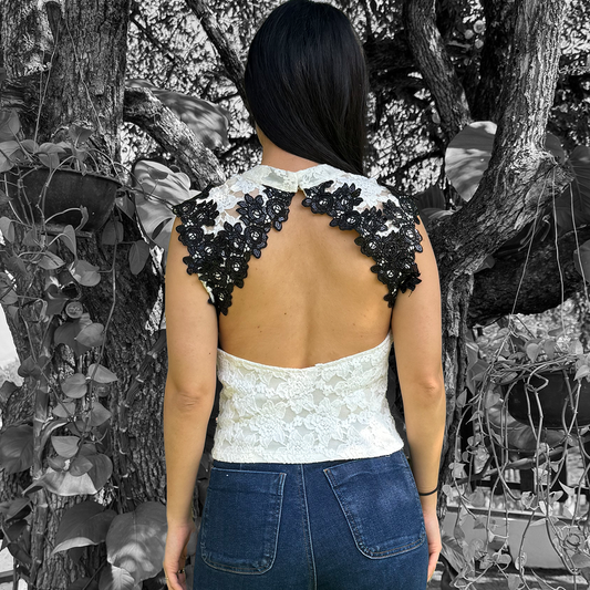 Top de encaje blanco con detalles negros