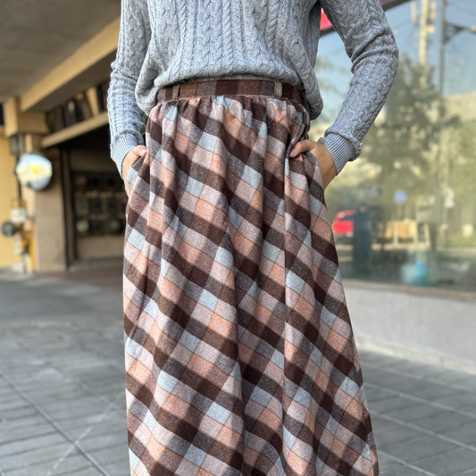 Falda midi escocesa de lana